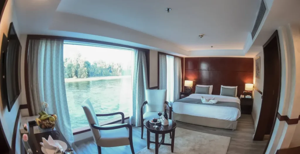 The MS Farida Nile Cruise offers an elegant all-suite cruising experience with a total of 40 Junior Suites, distributed across the main deck and two...