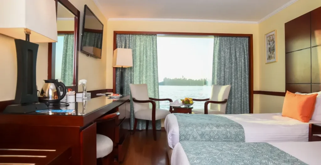 The MS Kahila Nile Cruise features a total of 72 accommodations, including 68 double cabins and 4 spacious suites, distributed across the main deck, two...